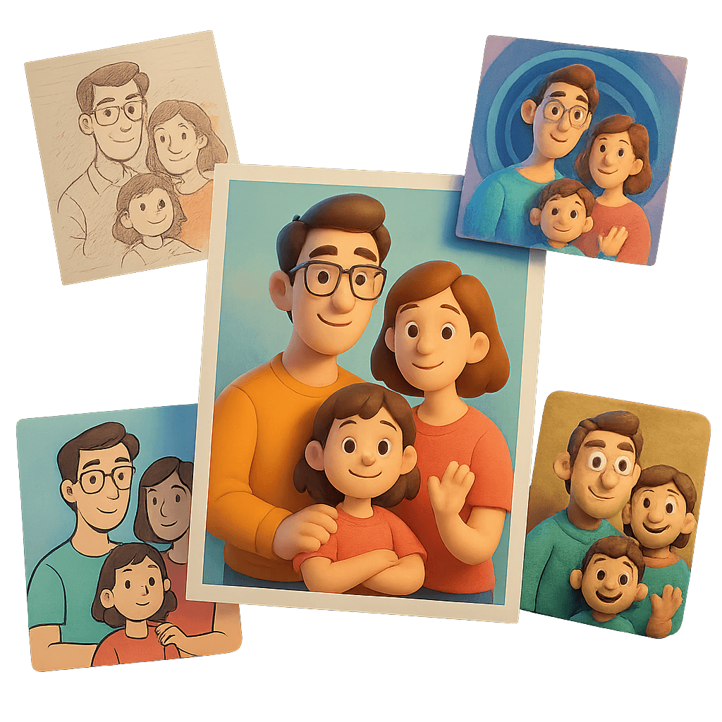 A feltöltött fotókból az AI egyedi illusztrációkat, meséket és személyre szabott alkotásokat hoz létre. Minden kép, történet és élmény a Te egyéniségedet tükrözi.
